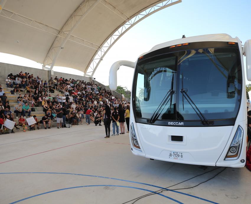 Karla Planter entrega autobús escolar a la comunidad de CUCosta
